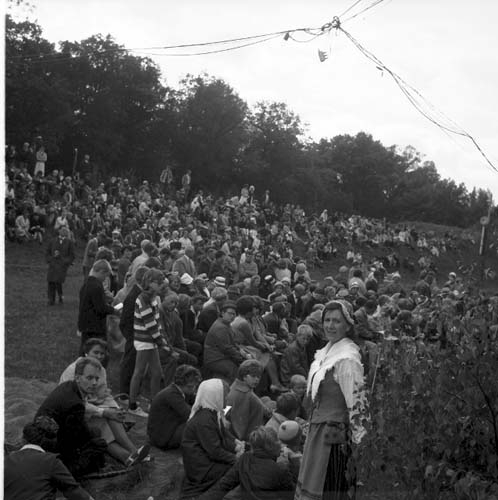 Bild över ett publikhav. De är utspridda över en gräsmatta. Skogen syns i bakgrunden.