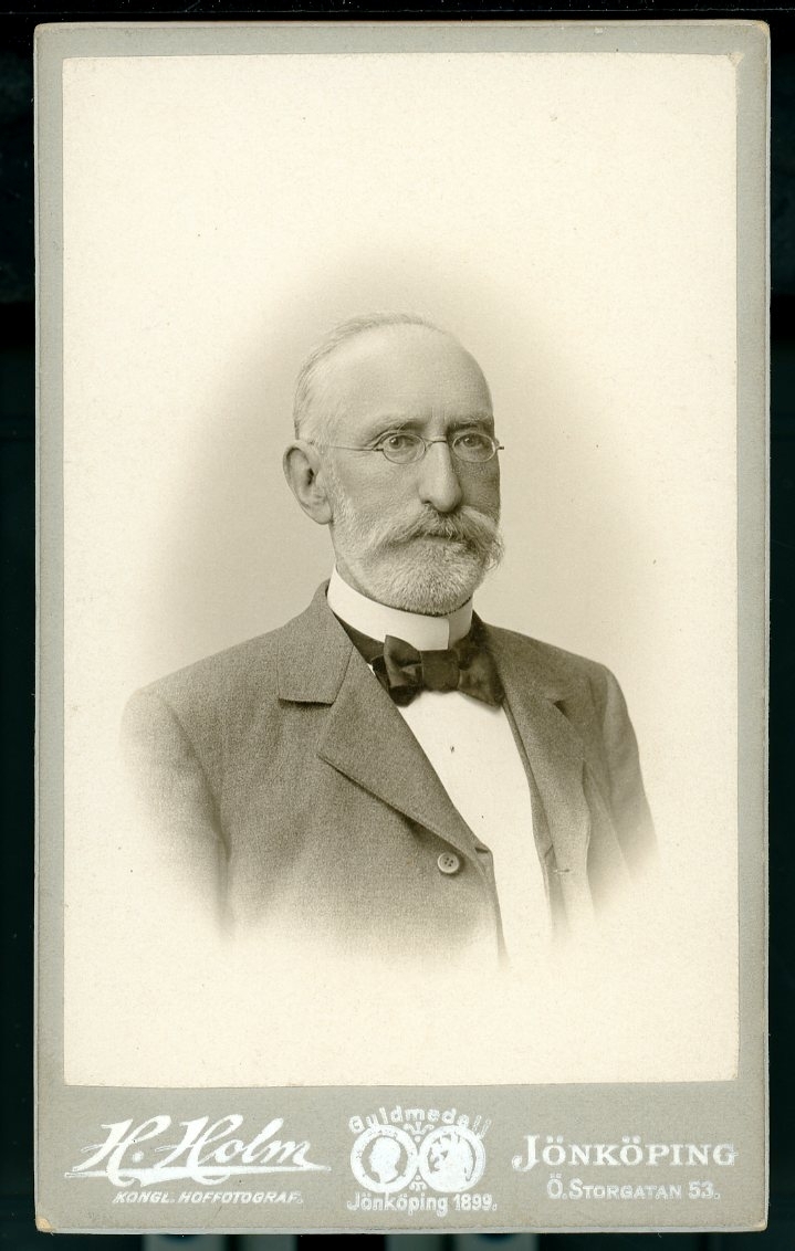 Kabinettsfotografi: Adolf Åstrand, med skägg och glasögon.