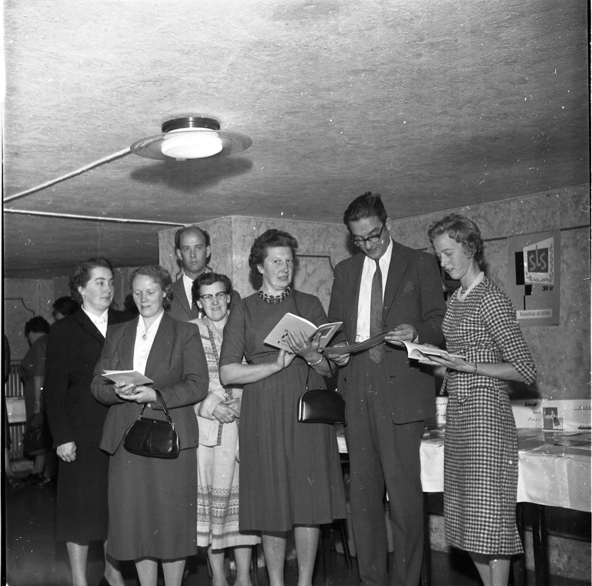 Kvinnor och män står och läser ur böcker. Bakom dem hänger en skylt med texten SLS 30 år.