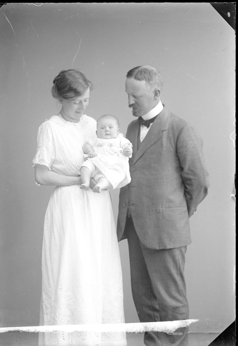 En kvinna och en man, hon har ett spädbarn i famnen.