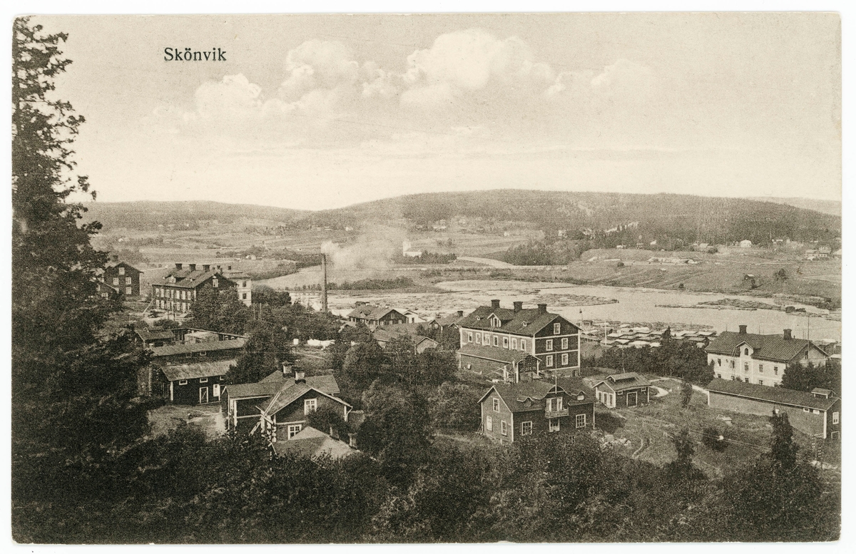 Vy över Skönvik. Arbetarbostäder. Vykort.