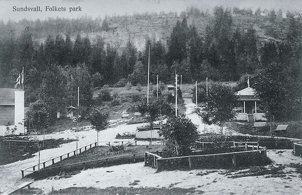 Vy med Folkets Park-området. Bildtext till vykortet "Sundsvall, Folkets park".