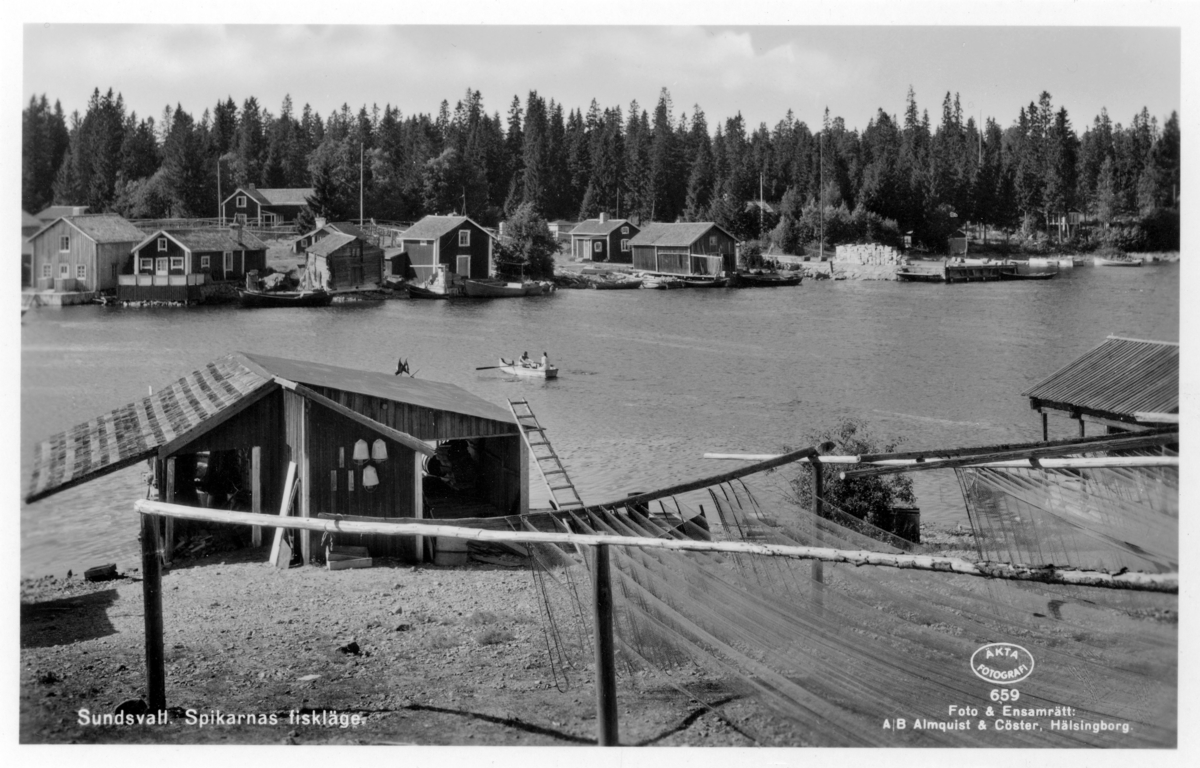 Spikarna. Bildtext till vykortet "Sundsvall. Spikarnas fiskläge.