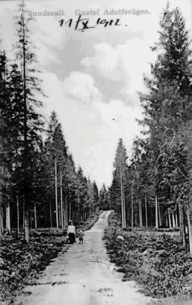Text på vykortet "Sundsvall. Gustav Adolfsvägen". Daterat 1912.