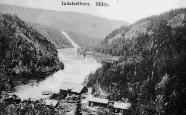 Sillre sågverk. Text på vykortet "Indalsälven. Sillre." Förlag : J. Sunessons Bokhandel