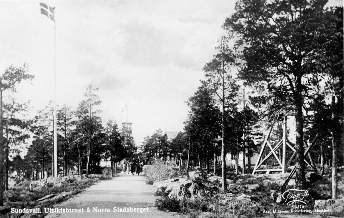 Text på vykortet "Sundsvall. Utsiktstornet å Norra Stadsberget".