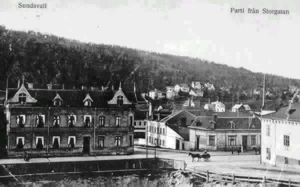 Text på vykortet: "Sundsvall Parti från Storgatan".