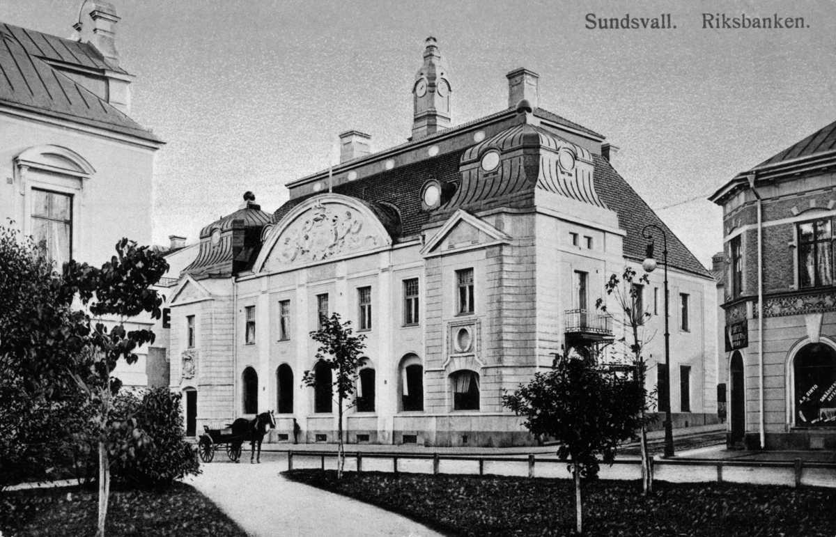 Riksbanken. Text på vykort "Sundsvall. Riksbanken."