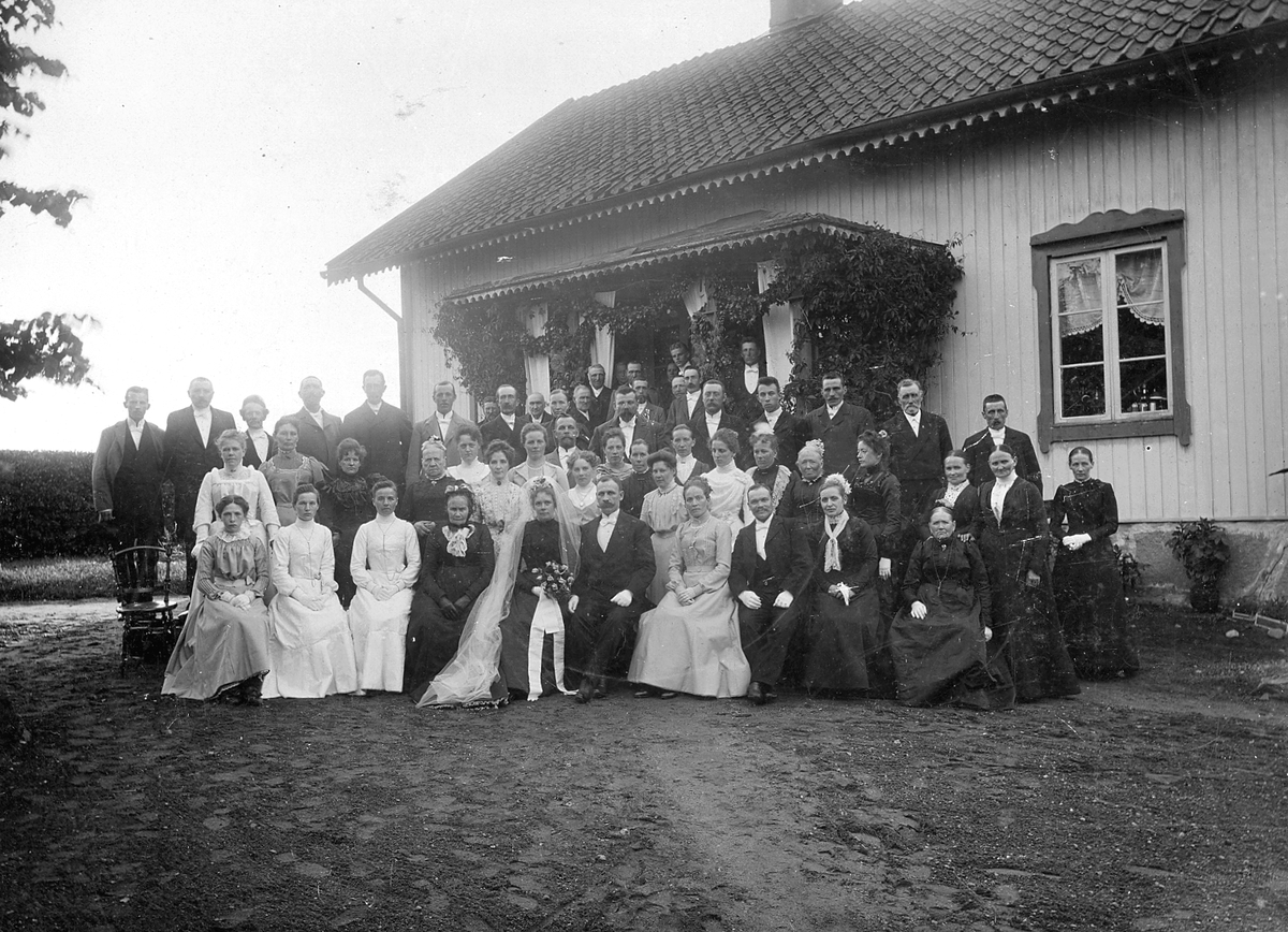 Bröllopsfölje fotograferade framför Gröna stugan i Skedevi socken.