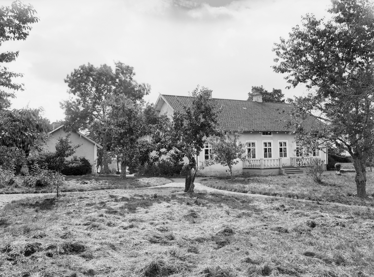 Präktig byggnad som fotografens register inte låter oss placera. Vi föreslår tills annat framkommer Ombergs skogsskola i Höje. Fotografiet kan dateras till omkring förra sekelskiftet.