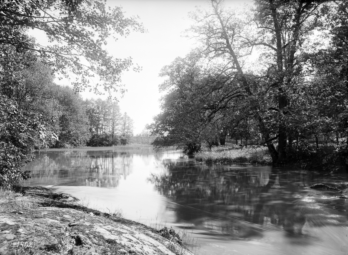 Kapellåns flöde genom godset Lagerlundas ägor. I bakgrunden skymtar den präktiga stenbro som leder till och från gården.