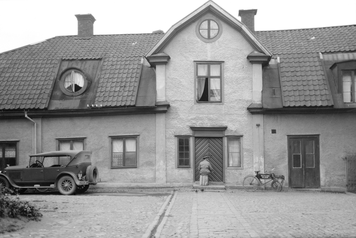 Gårdsinteriör från Nygatan 31 i Linköping. Vid tiden ännu känd som Schenlingska gården, uppkallad efter slottsbokhållaren Petter Schenling. Dennes tid var nu sedan länge förbi. Istället var det urmakare Evert Lundberg som länge gav huset sin prägel. Byggnaden kom att rivas 1931. Vy från norr.