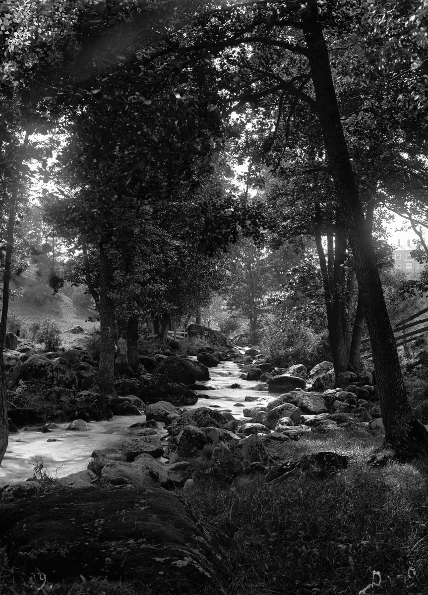 Tinnerbäcken vid tidig vår. Motiv som rimligtvis tagits som inspiration och förlaga för fotografens konstnärsskap som landskapsmålare. Platsen kan lokaliseras med hjälp av Länslasarettet i Linköping, som kan skönjas till höger i bilden. Således vy mot sydväst från läge i området Sandbäcken.
