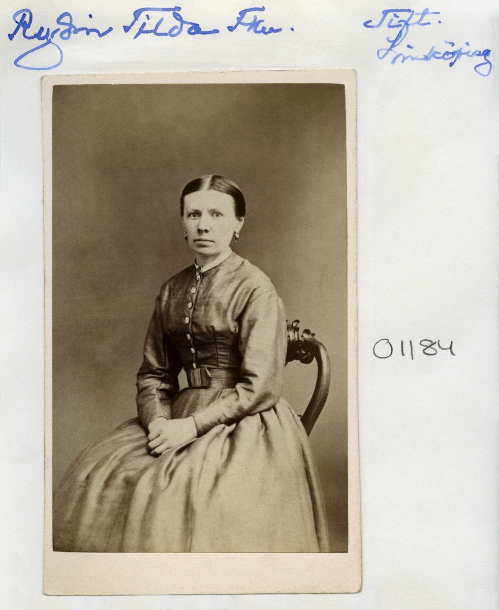 Kvinnan tolkas vara fröken Matilda Vilhelmina Kristina Rydin. Född 1837 i Flistad socken som dotter till Svante Rydin och Maria Kristina Johansson.