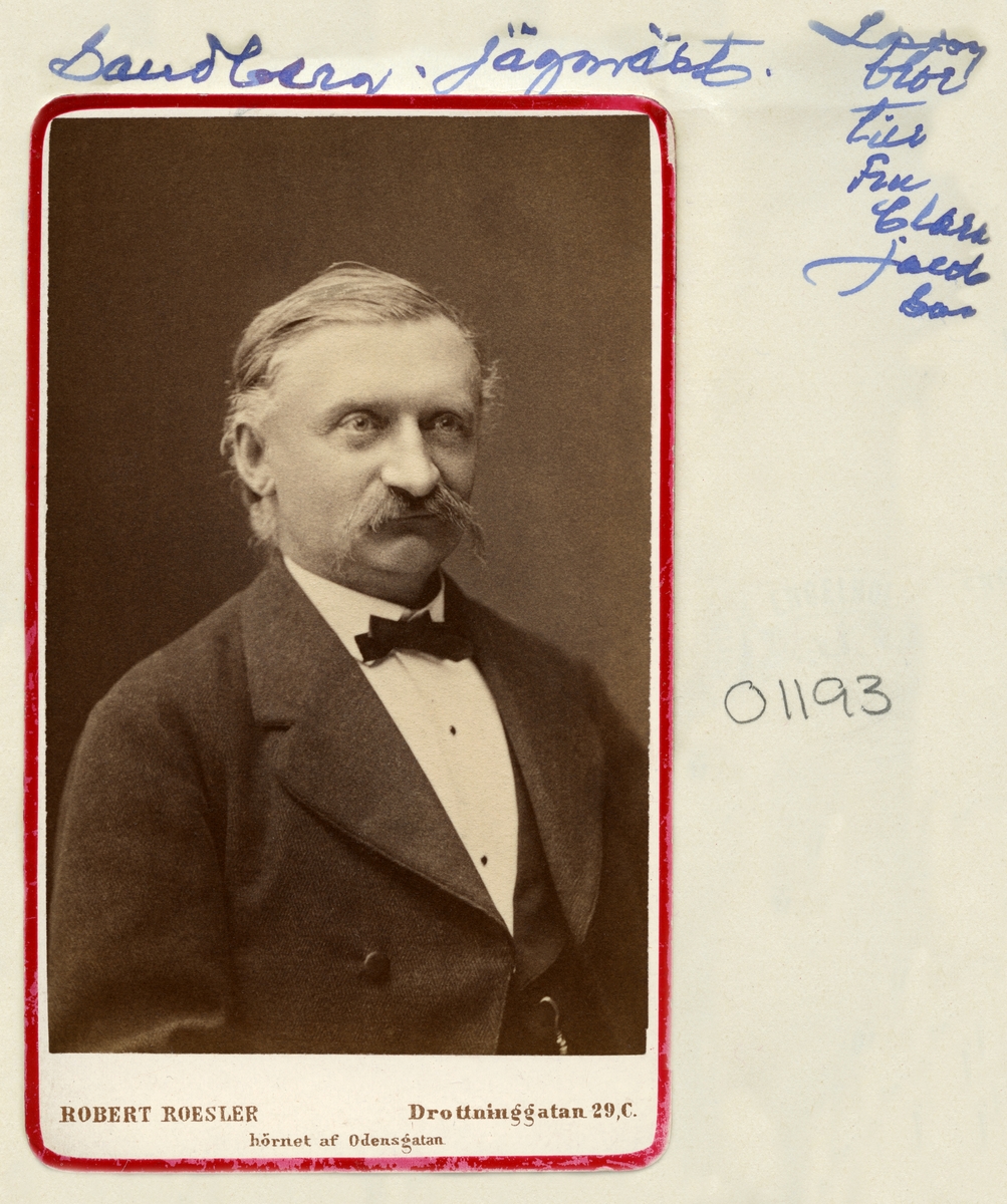 Porträtt av Thure Fredrik Sandberg. Född 1834 i Linköping som son till Per Gustaf Sandberg och Anna Helena Wigholm. Gift 1871 med Christina Pehrsson. Dog 1917 i Motala.