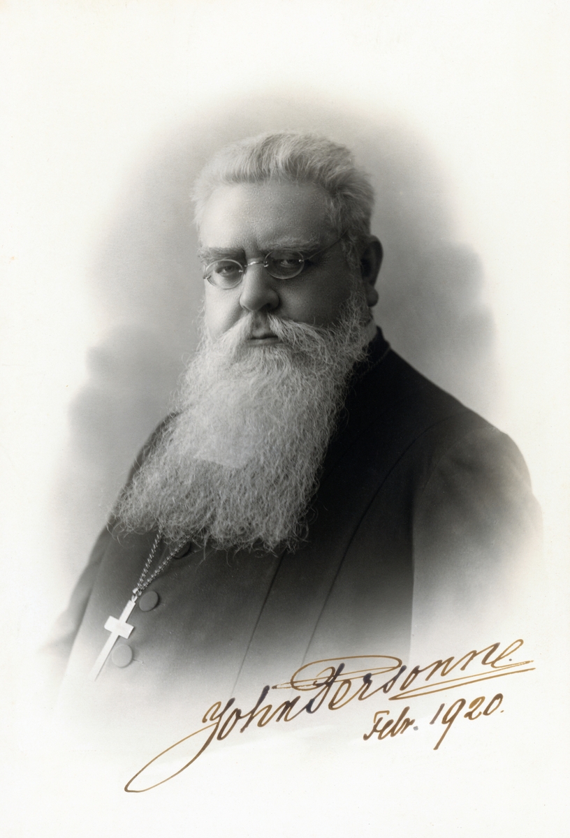 Porträtt av Johan (John) Personne, från 1910 biskop i Linköpings stift. Dessförinnan hade han från 1897 fungerat som stiftets domprost. För sina egenskaper är han inte minst hågkommen för sina insatser som ledamot av och sekreterare i den bibelkommission som arbetade fram 1917 års kyrkobibel. Från 1885 var han gift med Nanna von Knorring.