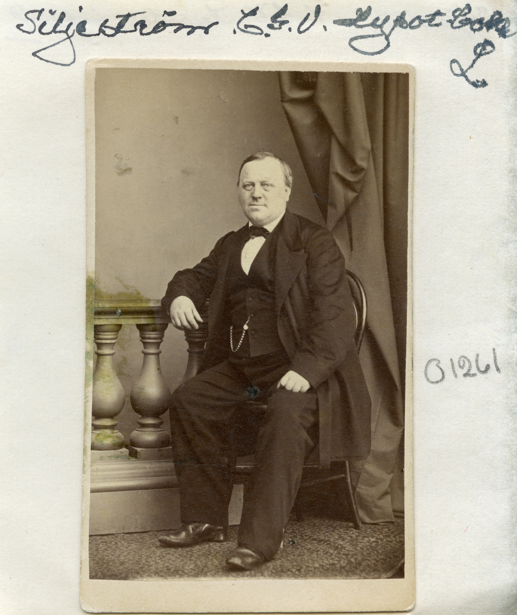 Bokhållaren Carl Gustaf Wilhelm Siljeström föddes och växte upp i Linköping. Fadern drev bageri i gatuplanet till familjens bostad invid Storgatans östra ände, alldeles invid Stångebro. Siljeström kom emellertid att välja en helt annan yrkesbana. År 1854 flyttade han till Östgöta hypoteksförenings fastighet i hörnet av Apotekaregatan-Ågatan och då om inte förr var han i tjänst vid låneinstitutet. Skrivare, bokhållare och kamrer är titlar han kom att bära under sin över 30 år långa anställning. Han dog som ogift 1885, ännu skriven i hypotekets fastighet.