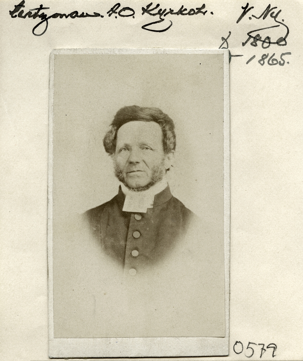 Porträtt av kyrkoherde Anders Olof Hertzman. Bördig från Motala inflyttade han till Västra Ny en tid efter makan Maria Lovisa Lagergrens bortgång. I socknen ledde han församlingen från 1869 till sin egen bortgång 1891.