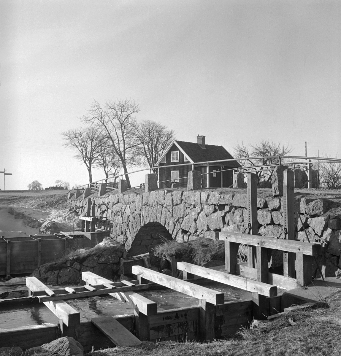 Bron över Kapellån vid Rakereds kvarn söder om Vikingstad. Dokumenterad 1950.