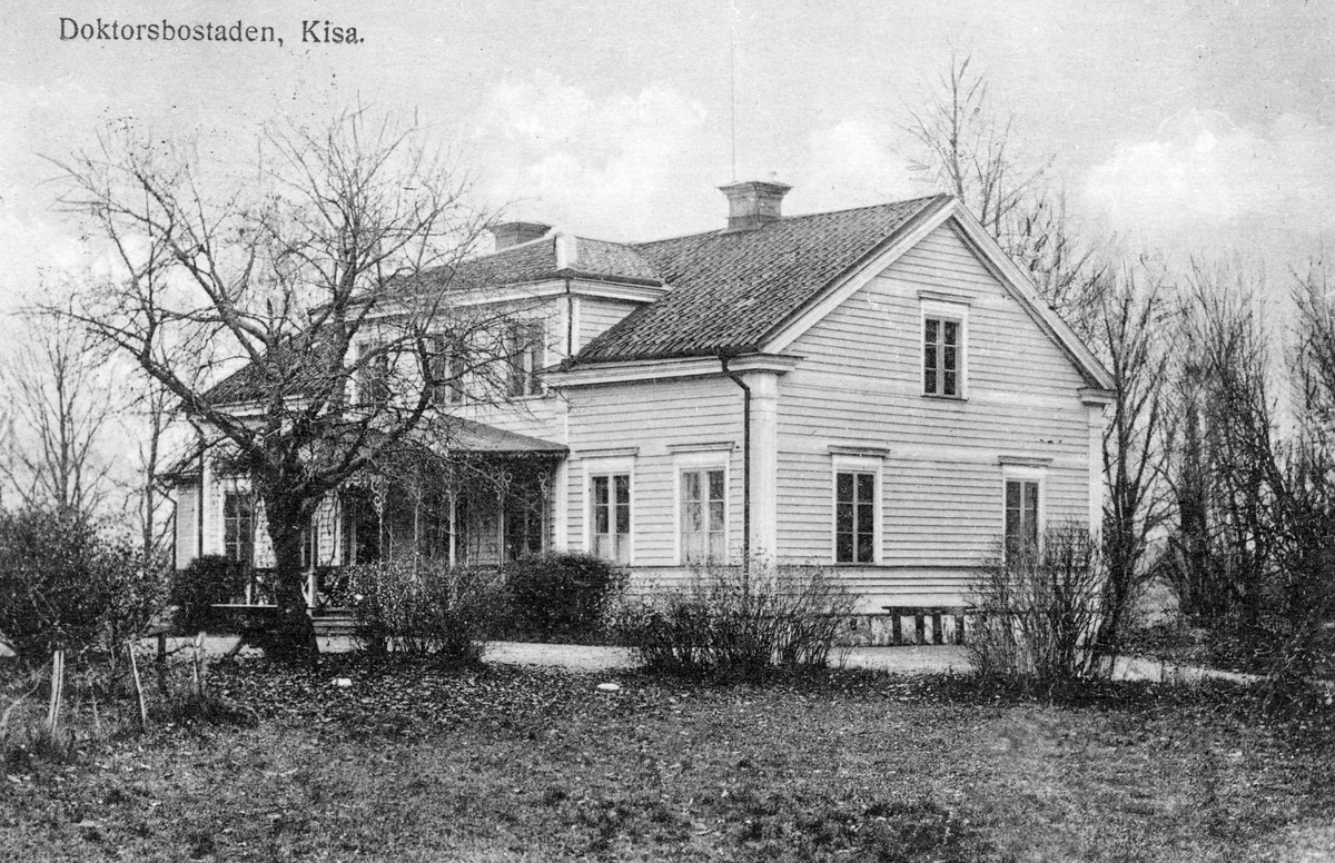 Läkarebostaden i Kisa på ett brevkort från tidigt 1900-tal. Vid tiden disponerades bostaden av lasarettsläkaren Johan Gustaf Bexelius tillsammans med hustrun Anna Frölich.