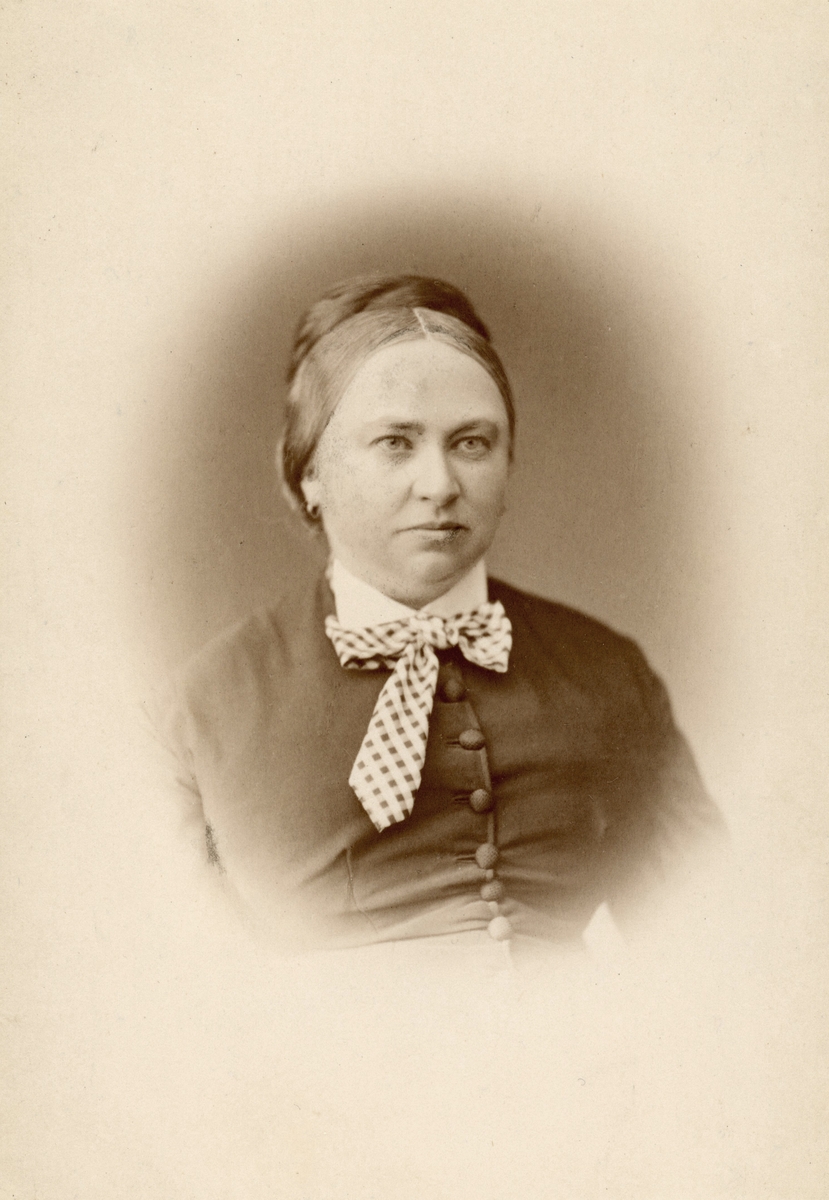 Vinjetterat porträtt av fru Constance Holmberg. Född i Linköping 1827 som dotter till byggmästare Johan Holmberg och makan Eleonora Margareta Tollbom. Från 1851 gift med garverifabrikör Adolf Stånggren.