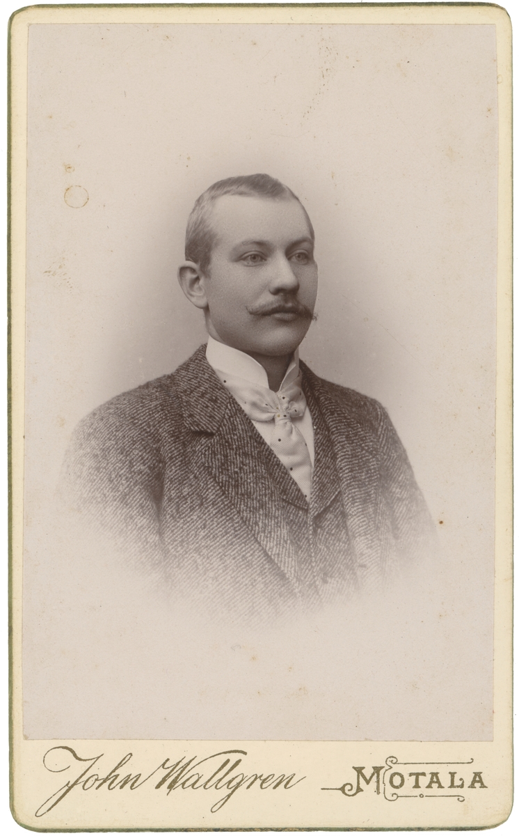 Porträtt av Knut Jonsson. Son till handlaren Alfred Jonsson och dennes hustru Hedvig Amalia Adell. I vuxen ålder kom Knut Jonsson bli en välkänd affärsidkare i Linköping. Gift med Anna Charlotta Vulcan.