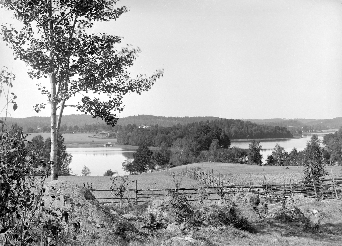 Motiv från Hannäs med vy över Hägerstadviken i sjön Vindommen. På motsatta sida skymtar Hägerstad slott.