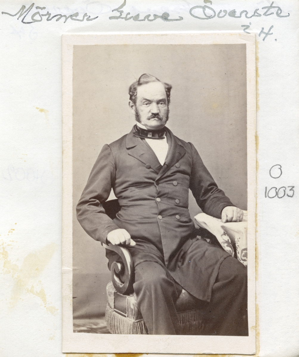Porträtt av Christer Hampus Mörner. Hans långa militära karriär kröntes med utnämningen till överste vid Första livgrenadjärregementet 1871. Gift första gången 1842 med Anna Carolina Casparsson. Efter dennes bortgång 1858 omgift 1861 med Ulrika Maria Scharp. Makarna ägde och bebodde Harvestad i Landeryd socken.