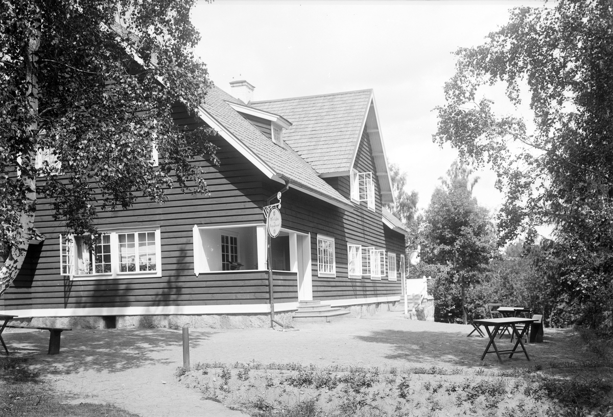I samband med öppnandet av Östra Centralbanans 1902 uppstod behov av särskild service vid spårets delning i Bjärka-Säby. Invid stationsbyggnaden lät man 1903 uppföra ett värdshus med rum för resande. Byggnaden inrymde även handelsbod. Här en dokumentation daterad 1904.