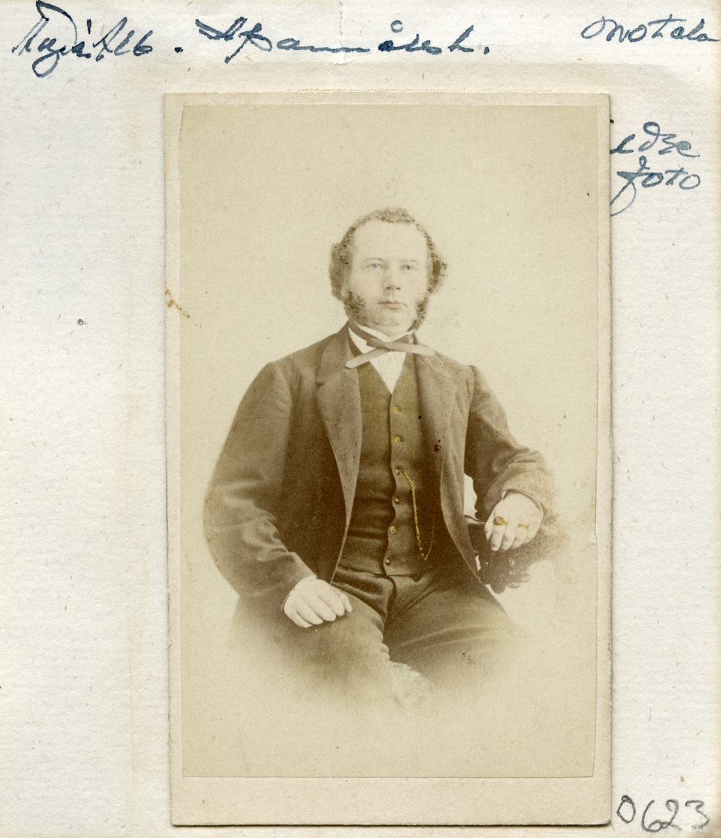 Porträtt av Albert Hydén. Spannmålshandlare i Motala. Gift första gången 1869 med Anna Sofia. Makarnas äktenskap resulterade i fyra söner vilka nedkom mellan åren 1870-1878. Anna Sofia avled dessvärre 1879 vid Modums sanatorium i Norge endast 28 år gammal. Hans andra äktenskap med Anna Hydén varade från 6 februari 1882 till spannmålshandlarens död på dagen två år därefter.