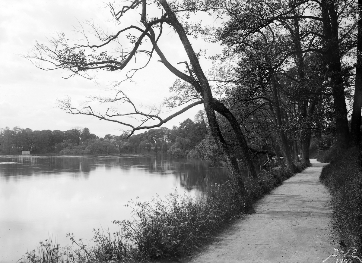 Strandpromenaden i anslutning till kuranstalten Kneippbaden i Norrköping. Vid sidan av de vid kurbadet rekommenderade kallvattenbehandlingar förespråkades motionspromenader, vartill promenadstråket utmed Motala ström passade synnerligen väl.