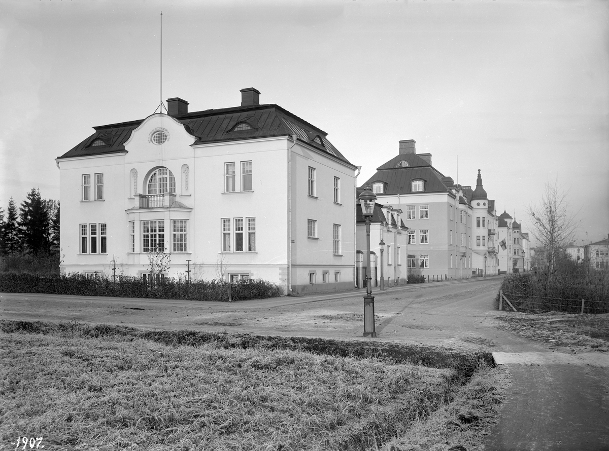 Utmed Klostergatans södra del bebyggdes området mot Trädgårdsföreningen i rask takt från förra sekelskiftet. Mot gatan med främst flerfamiljshus, mot parken med ett par exklusivare villor i områdets södra del. År 1907 var husraden mot Klostergatan komplett.