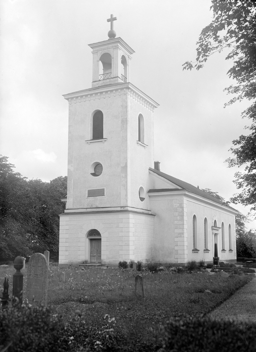 Vallerstad kyrka uppfördes 1833 efter ritningar av den produktive och välrenommerade arkitekten och byggmästaren Abraham Nyström. Med sitt lanterninförsedda torn skapade han i Vallerstad en typisk exponent för tidens kyrkobyggnadsstil. Här en dokumentation av Östergötlands museum 1940.