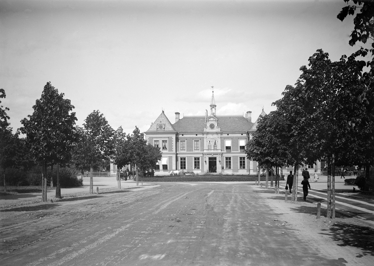 Vy mot Linköpings station. Uppförd under åren 1871-1872 efter ritningar av Adolf Edelsvärd. Tiden för bilden är 1890-tal.