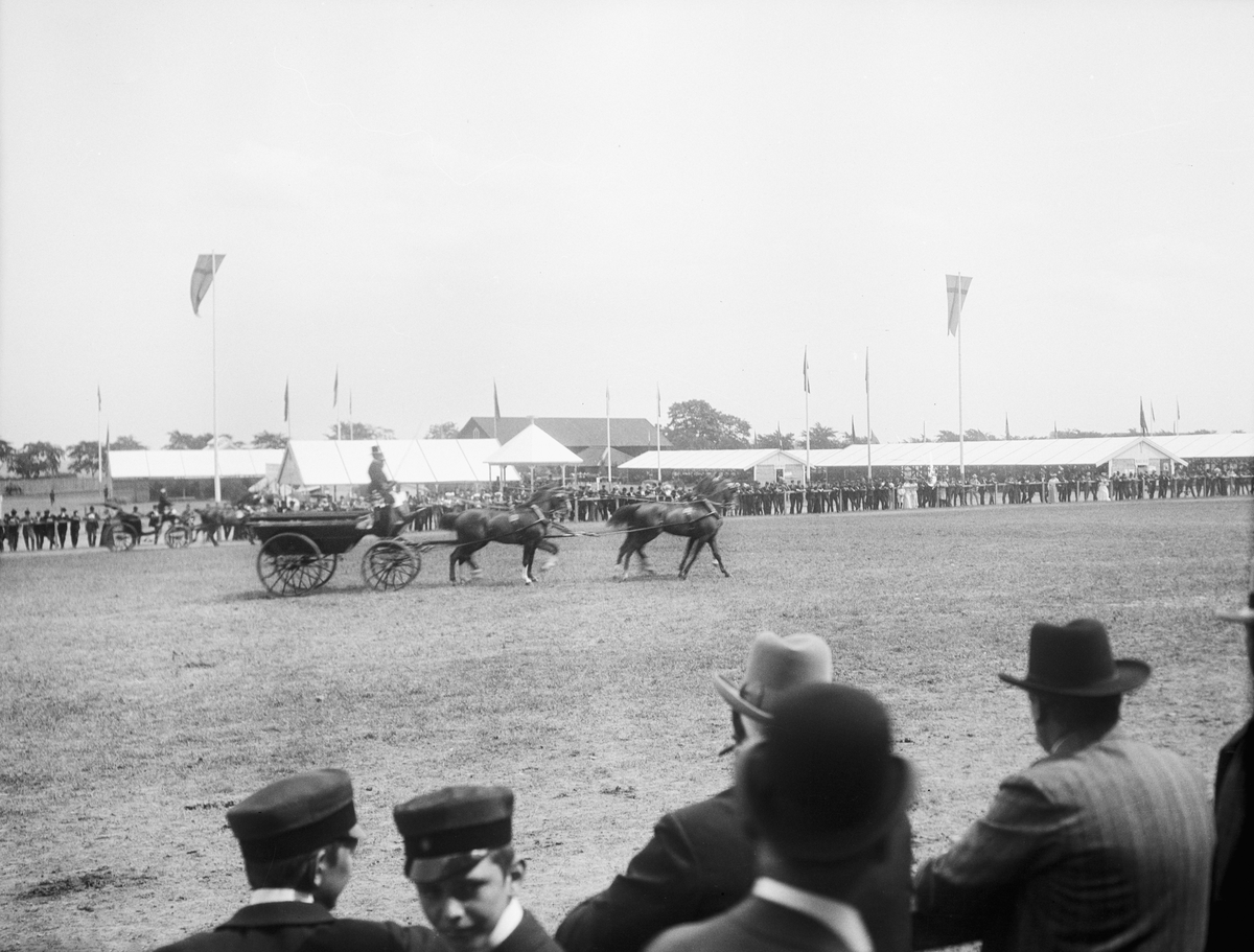 Ett elegant fyrspann fångar åskådarnas uppmärksamhet. Bild från 1906 års allmänna svenska lantbruksmöte i Norrköping.