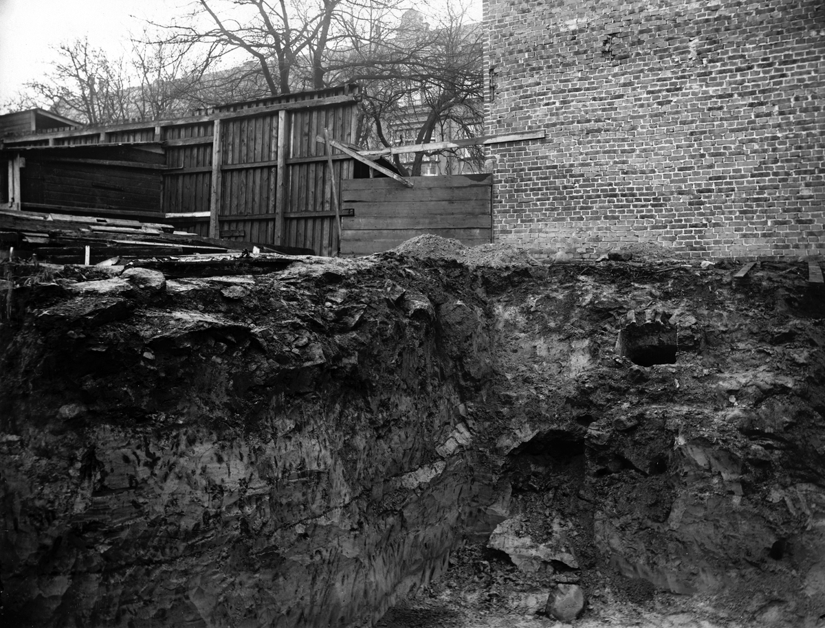 1927 önskade Frälsningsarmen uppföra en ny lokal i Norrköping. På den valda platsen i kvarteret Kapellhorvan fanns en äldre källare överbyggd med ett magasin i trä från senare tid. Detta föranledde Östergötlands museum att företa en antikvarisk undersökning. Ammanuens Bengt Cnattingius beskriver källaren som uppförd av dels kluven dels oberarbetad granit som murats samman och putsats, täckt av ett tunnvalv likaledes av granit. Rummets dimmensioner var 4,25 x 6 m med öst-västlig huvudriktning. Då källaren inte som tidigare bedömts ha medeltida ursprung, tillstyrktes att den fick rivas. Bilden visar del av källare. Vy från sydost.