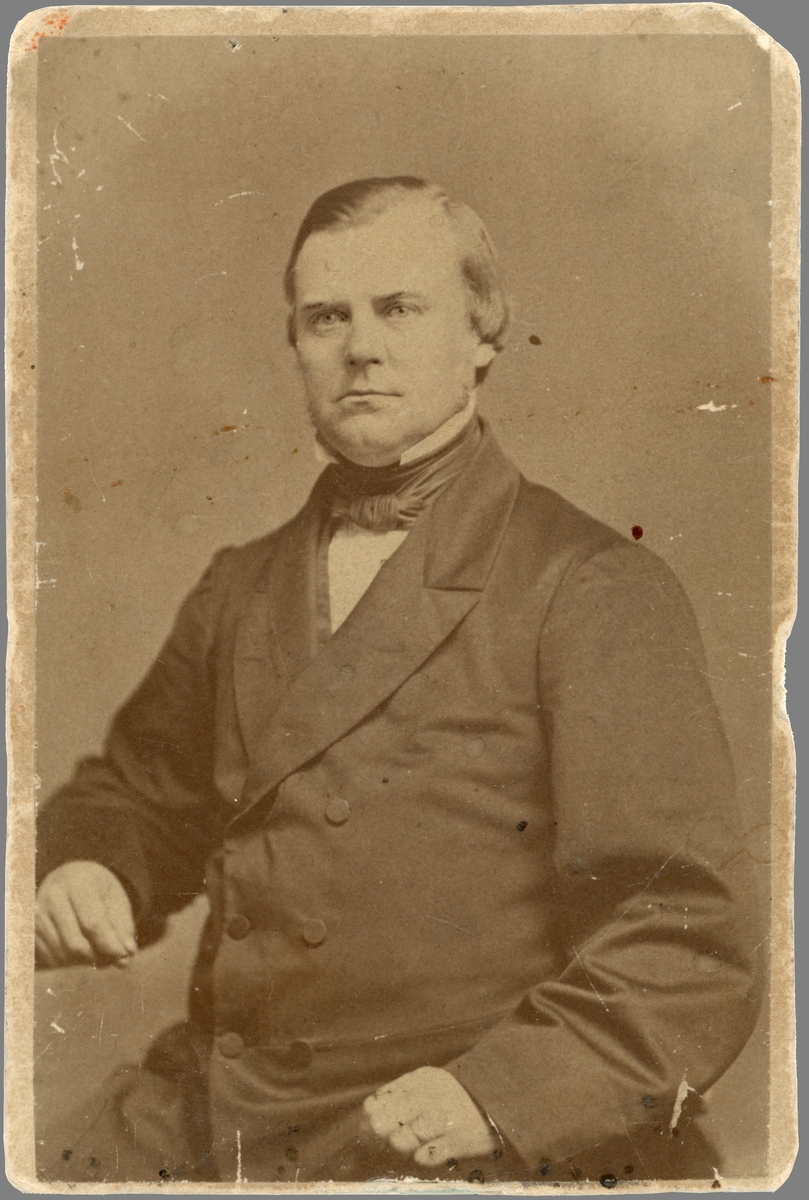 Porträtt av Per Sjöbring. Domprost i Linköping under perioden 1867-1878. Sistnämnda år flyttade han till Kalmar för att bli biskop. Gift 1852 med Maria Sofia Rogberg, bördig från Uppsala.