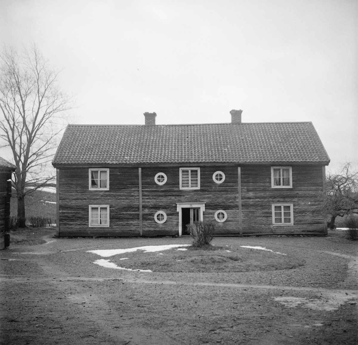 Dokumentation av Öringe Frälsegård i Ekeby socken. Parstuga i två våningar, uppförd i slutet av 1700-talet. Vy från väster. Vid tiden för bilden arrenderades gården av makarmna Erik och Maria Gustafsson.