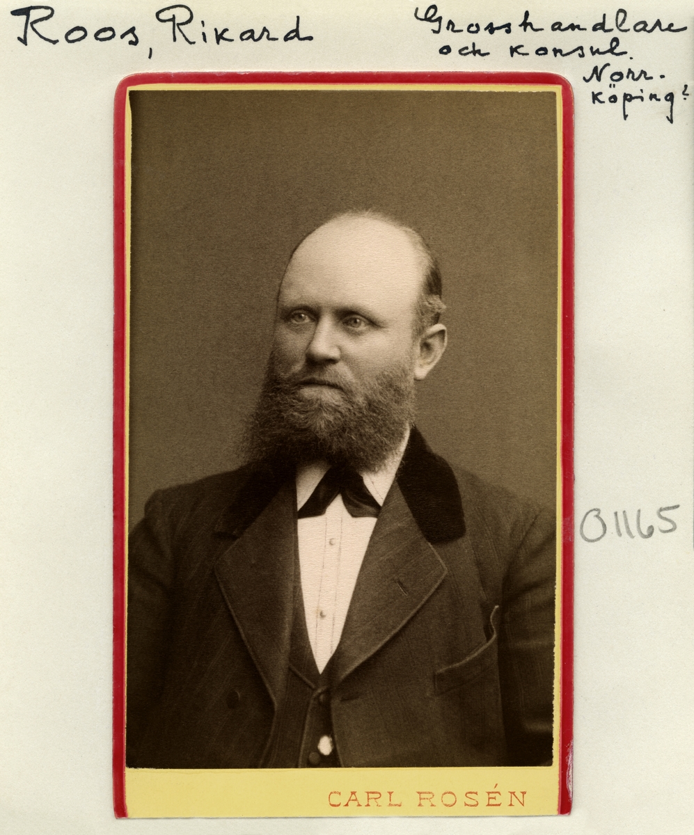 Porträtt av grosshandlare och konsuln Rikard Roos. Född 1839 i Norrköping som son till grosshandlare Carl Johan Roos och Lovisa Albertina Christensson. Från 1874 gift med Ida Lyon.