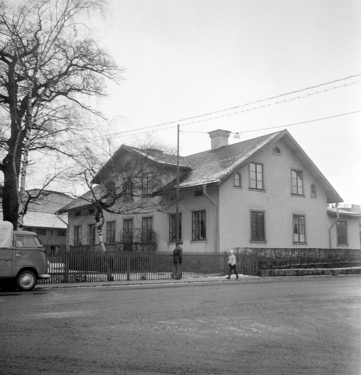 "Villan" i hörnet av Hamngatan-Kungsgatan revs under 1970-talet i samband med tidens stora omdaning av kvarteret Bonden. Huset var då dryga 100 år, uppfört som det var i början av 1860-talet på initiativ av bankkamrer Carl Arvedsson. Denne hade tidigare ägt den intilliggande Stångs kvarn och undantagit villans tomt vid en försäljning av kvarnrörelsen. Vid tiden för bilden anlöpte ännu Kungsgatan med Hamngatan och villan bar adress Kungsgatan 4.
