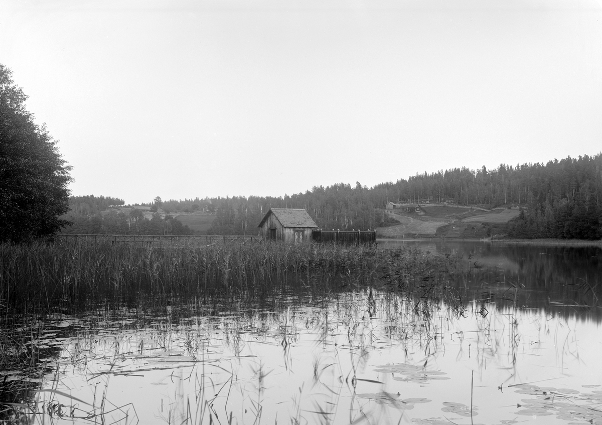 Vy över Hägerstadviken i sjön Vindommen med torpet Anneberg under Hägerstad skattegård i bakgrunden. Badhuset tillhörde vid tiden familjen Bäck som vid tiden ägde Hägerstad slott.