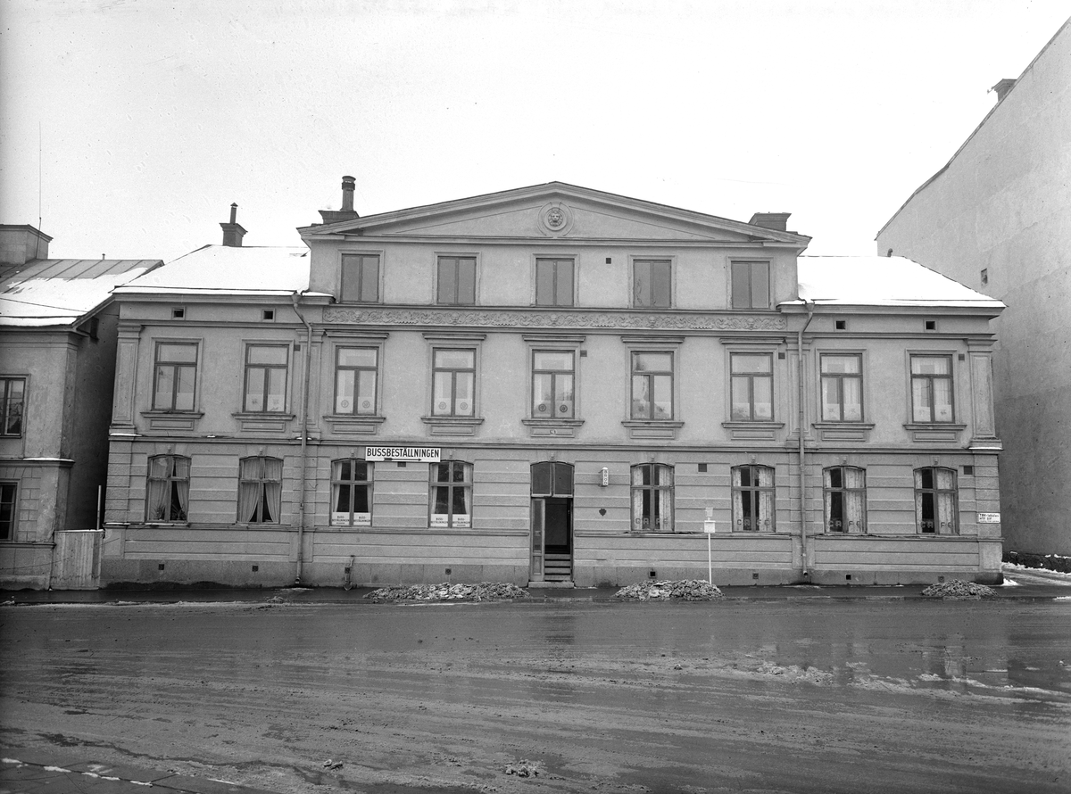 Ett av många högklassiska hus som ansetts stå i vägen för efterkrigstidens upplevda behov. Det gäller inte minst det sena 1800-talets ofta rikt putsdekorerade byggnader som vid den tidens expansion omsorgsfullt uppfördes utmed svenska städers centrala gator. Linköpings paradgata Drottninggatan var inget undantag, tvärtom, och bruksägare Christian Sjögreens fastighet från det sena 1870-talet uppfyllde sannolikt anspråken. Foto 1956 kort före rivning.