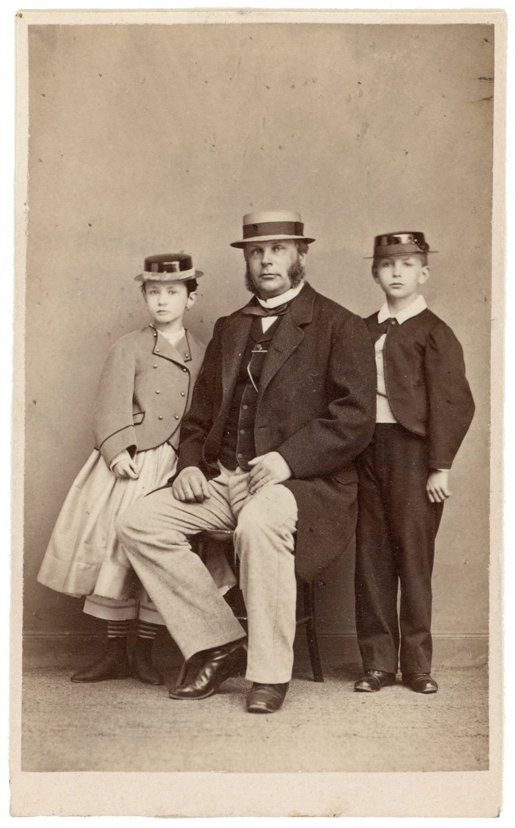 Porträtt av doktor Ludvig Åman med barnen Erik och Ellen. Denne var från 1852 allmän läkare för att 1854 bli lasarettsläkare i Linköping. Från 1860 fungerade han även som fängelseläkare i staden och från 1869 även som kurhusläkare. Gift med Fanny Nordvall.