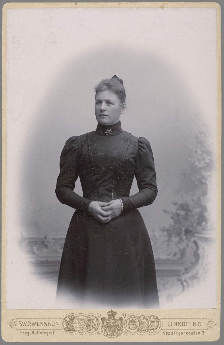 Porträtt av Christina Andersson från senare delen av 1890-talet. Född i värmländska Segerstad socken som dotter till rättaren Anders Olofsson och dennes maka Stina Jonsdotter. Som ung kom hon i pigtjänst på gårdar i hemsocknen men även en tid i Karlstad. I november månad 1885 fick hon oförklarat tjänst som hushållerska i redaktören och tidningsutgivaren Isidor Kjellbergs hushåll i Linköping. Den radikale Kjellberg bodde vid tiden med sonen Emil invid Storgatan strax öster om Sankt Larskyrkan. Stadsgården inrymde även redaktion och tryckeri för hans tidning Östgöten med flera utgivningar. Efter Isidor Kjellbergs bortgång 1895 fortsatte Christina sitt arbete i den nu vuxne sonen Emils hushåll. År 1902 följde hon med Emil Kjellberg och hans familj när de under våren flyttade till Helsingborg. Tiden i den nya staden blev emellertid kort för Christina. Hon avled i sviterna av magcancer i april månad 1904.