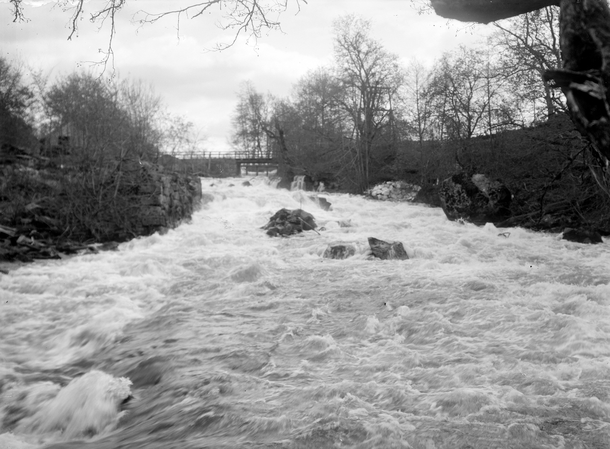 På sin färd från Stora Rängen till Ärlången faller Stångån 28 meter. I äldre tid var fallhöjden än högre men låstes när den högst belägna sjön sänktes i slutet av 1800-talet. Det största och praktfullaste fallet låg i Skorpa, här i vårflöde 1920.