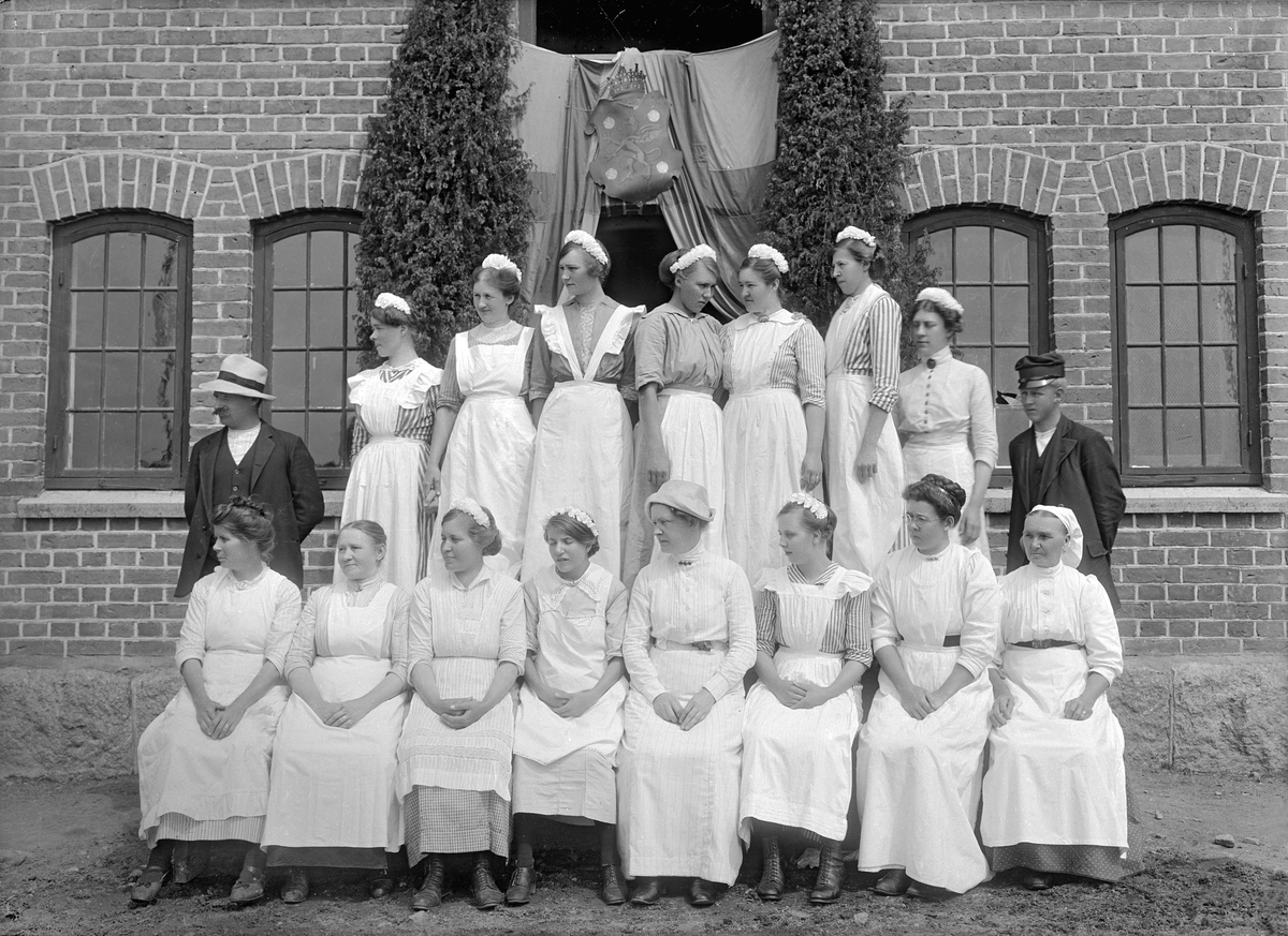 Mejerielever på Bjärka Säby. År 1882 flyttades Östergötlands läns lantbruksskola till Bjärka Säby. Från 1890 kompletterades skolan med en utbildning för mejerskor. Odaterad.