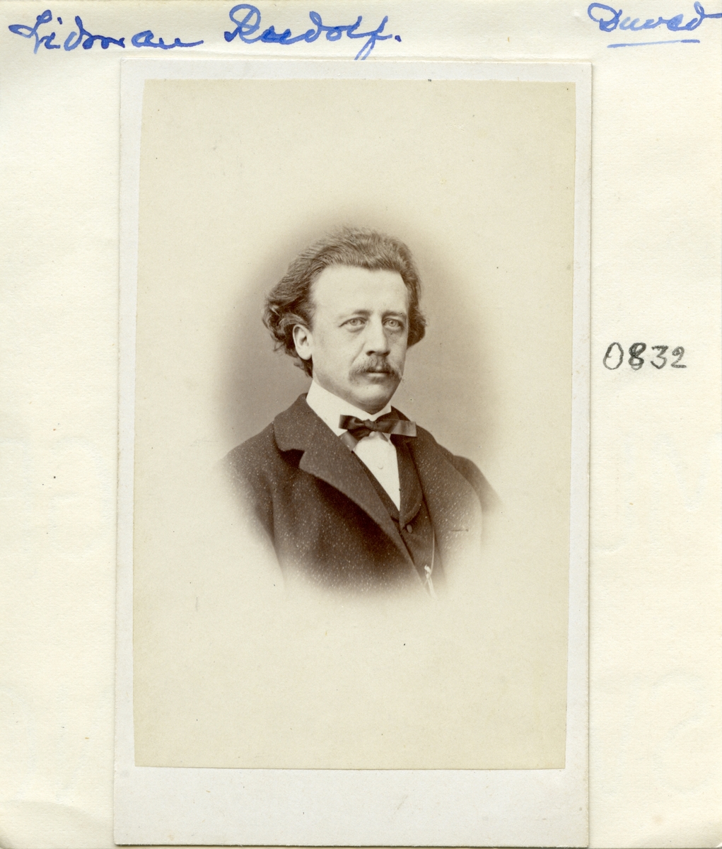 Porträtt av Rudolf Lidman. Född i Linköping 1828 som son till domprosten Sven Lidman och dennes maka Brita Landberg. Vidare i livet kom han som tjänstgörande inom Tullverket att föra en ambulerande tillvaro. Arbetet förde honom till så skilda bosättningsorter som Stockholm, Göteborg, Åre, Visby och Helsingborg. Från 1873 var han gift med Olga Wolff.