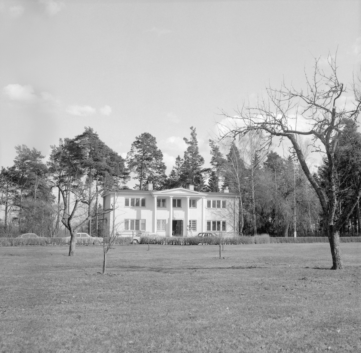 Disponentbostaden till Svenska Chokladfabriks AB (sedermera Cloetta) i Ljungsbro. Uppförd 1934 fördelad på sju rum och kök. Här dokumenterad av Östergötlands museum 1975.
