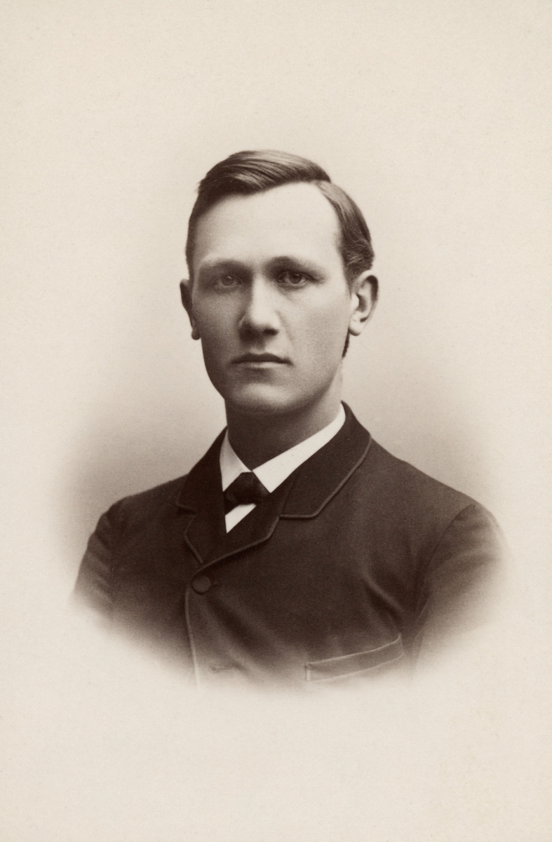 Bernhard Risberg porträtterad i Uppsala 1887. Vid tiden filosofie kandidat, på god väg mot licentiatexamen och vidare doktorshatt med påföljande tjänst som lektor vid Linköpings läroverk.