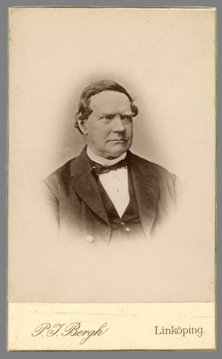 Porträtt av regementsläkaren och författaren Carl Anton Wetterbergh, mest känd under pseudonymen Onkel Adam. Från 1847 i tjänst som regementsläkare vid Första livgrenadjärregementet i Linköping men inte permanent boende i staden förrän 1867. Parallellt med läkarvärvet var han en erkänd författare av romaner och noveller. Vid början av 1860-talet miste han lusten att skriva den typen av litteratur. Istället kom att han från 1862 att ägnade sig åt att ge ut barntidningen Linnea. Hans hem i Linköping, Onkel Adamsgården, finns bevarat och husets övre våning fungerar sedan 1927 som museum till hans hågkomst.